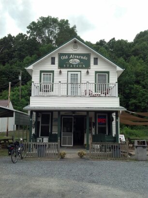 After about seven miles, I found myself in a tiny settlement called Alvarado Station about halfway between Damascus and Abingdon. I went inside the dark little shop on the ground floor to get some iced tea, sat down on the stoop in front, and smiled when I heard people inside the shop saying, “It’s pouring rain in Tennessee.”