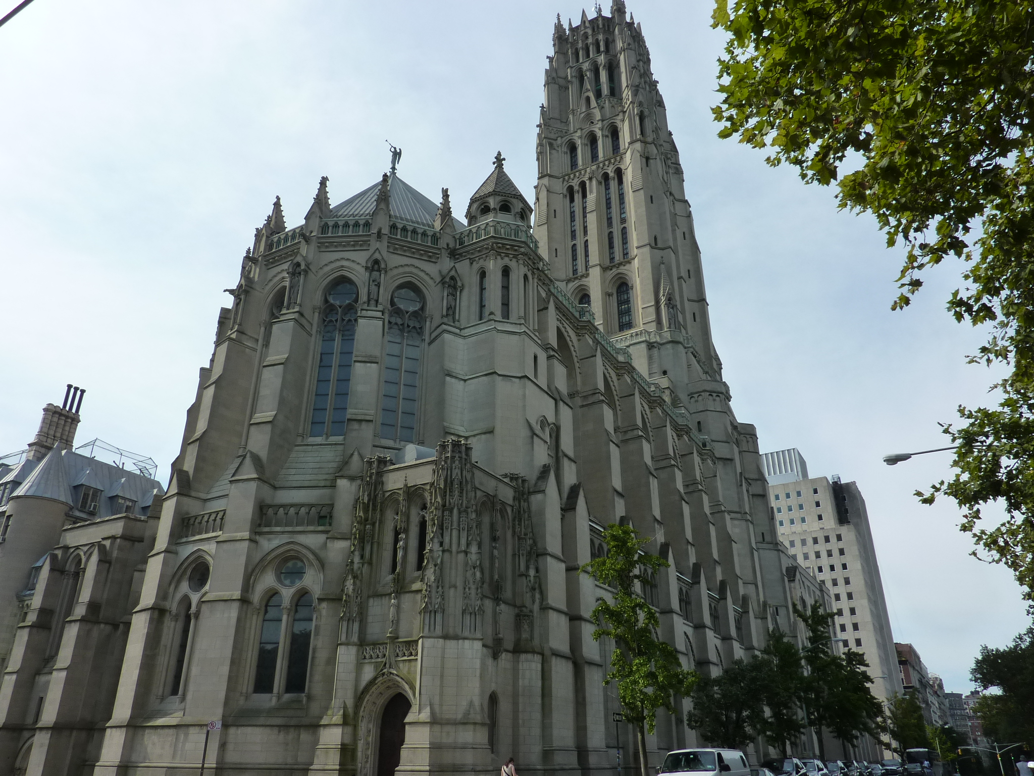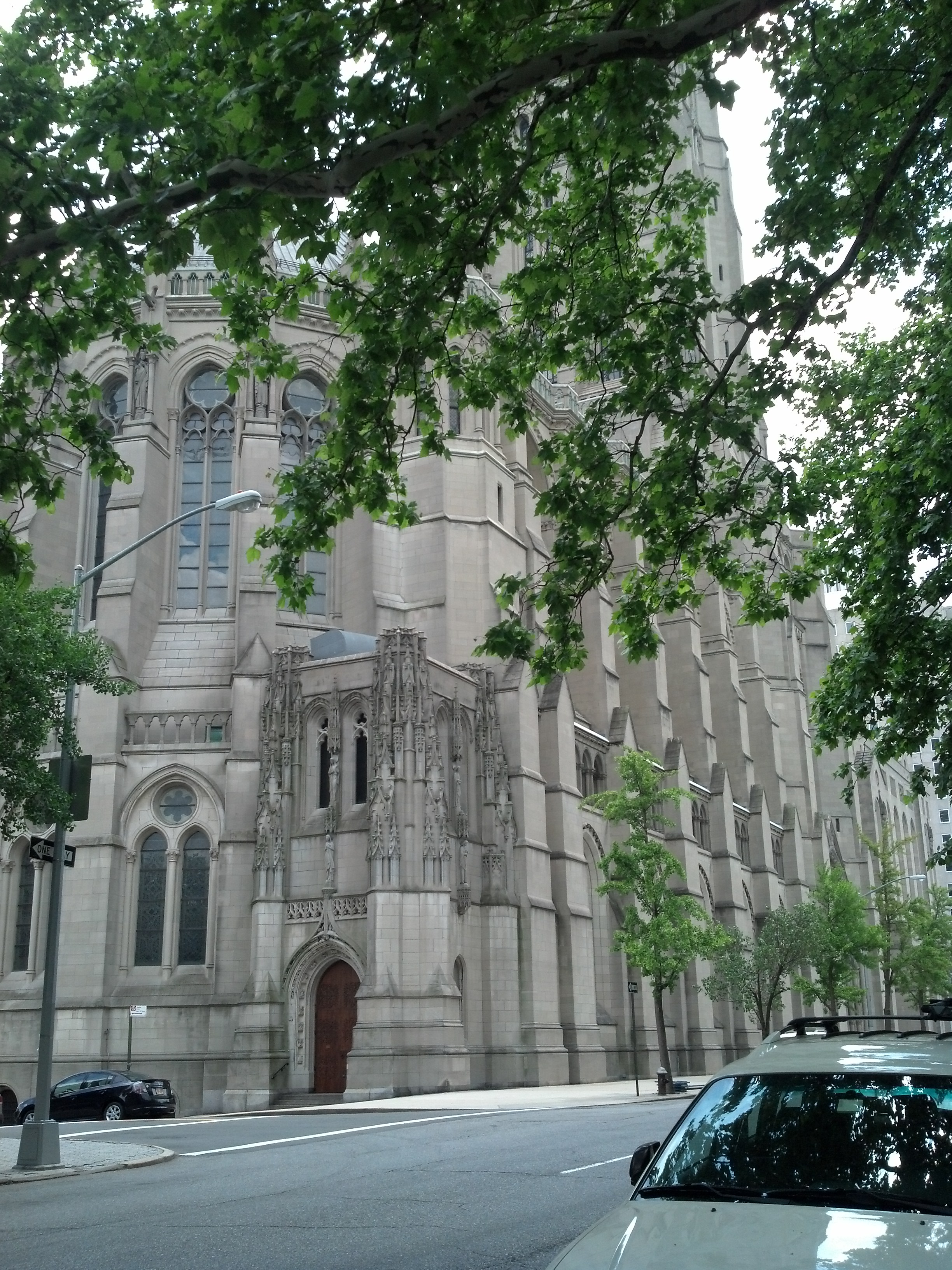 I don’t know why, but this picture of the Riverside Church in Manhattan is particularly beautiful to me; I wish I had been able to crop the car out, but I was taking the photo from my bicycle seat, so perhaps my perspective was not the best. It is somehow more like an etching than a photograph. It captures what I have always loved best about some stone churches–their lightness, their delicacy, despite being built of the heaviest substance builders have at their disposal. Here’s another photo by a “BonCJ” that I found: