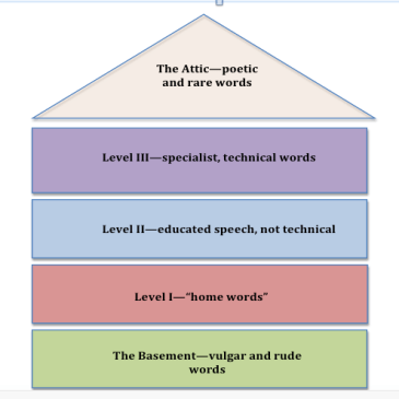 What’s the best level of language to use? It depends on your purpose.  If you want people to trust you, use Level I. If you want people to think you’re  oh-so-intelligent, use Level II. If you require absolute precision in specialist occupations, use Level III words. If you want to offend someone, use the Basement. … More So What’s the Best Level of Language to Use?, You May Ask.